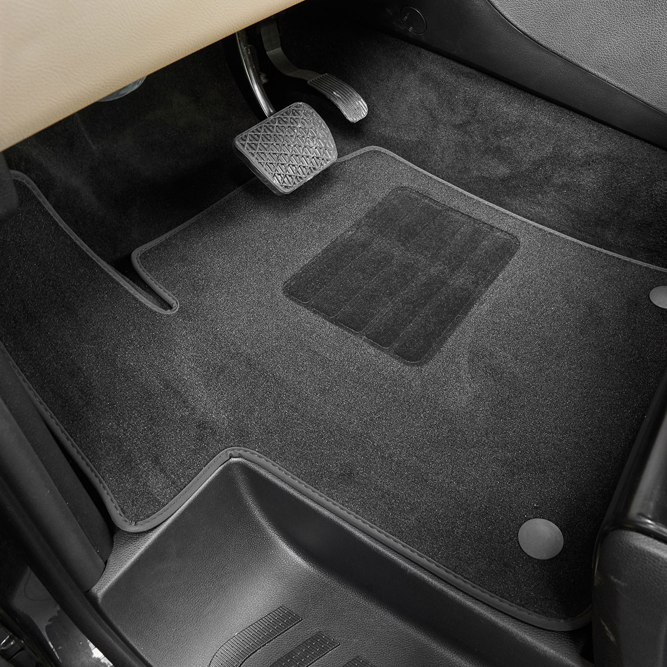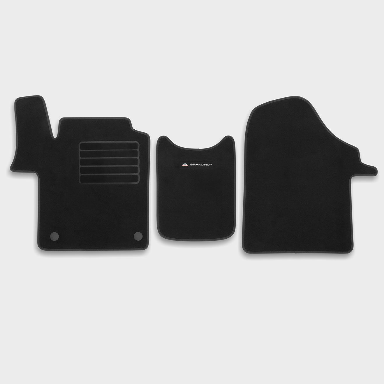 Der Fahrerhausteppich ist dreiteilig verarbeitet, so dass der komplette Bodenbereich des Fahrerhauses und Durchgang geschützt ist.
