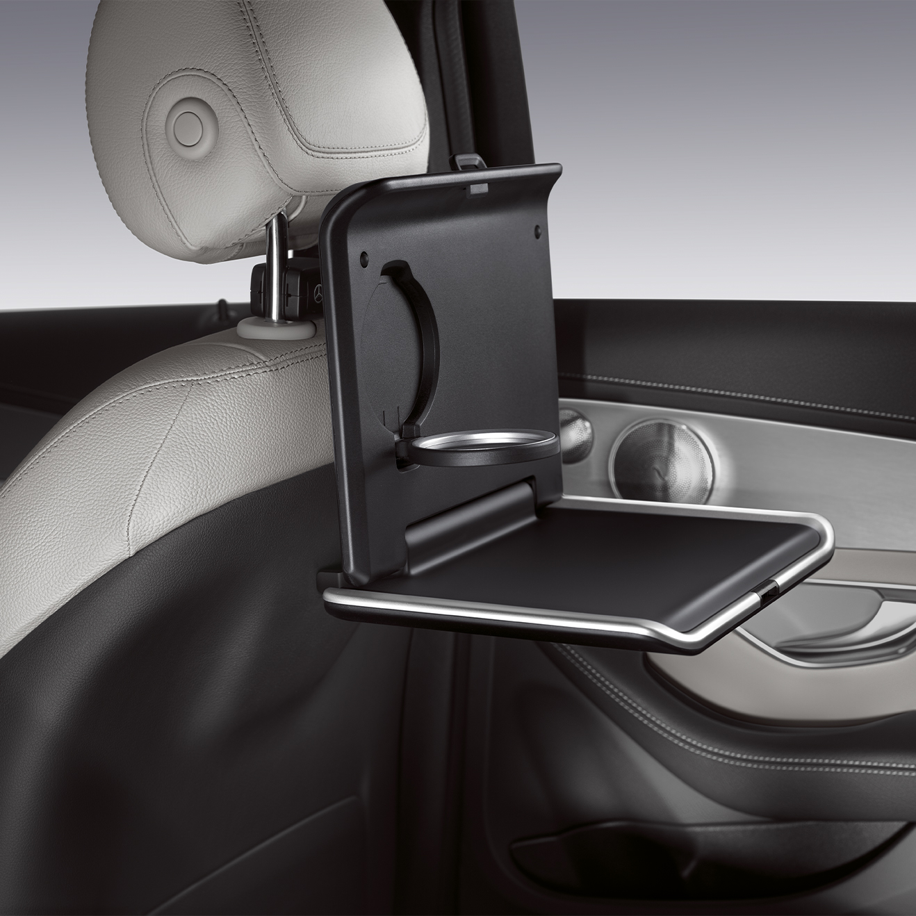 Der Mercedes-Benz Klapptisch kann einfach angeschlossen und entfernt werden. Das modulare System basiert auf einem Basisträger, dieser kann durch verschiedene Produkte erweitert werden. Zur Montage des Kleiderhakens ist zwingend der Basisträger notwendig. Das Style & Travel Equipment ist nur an Sitzen mit Kopfstützenholmen anwendbar. Ausgeschlossen ist die Verwendung an Integralsitzen und Schalensitzen.