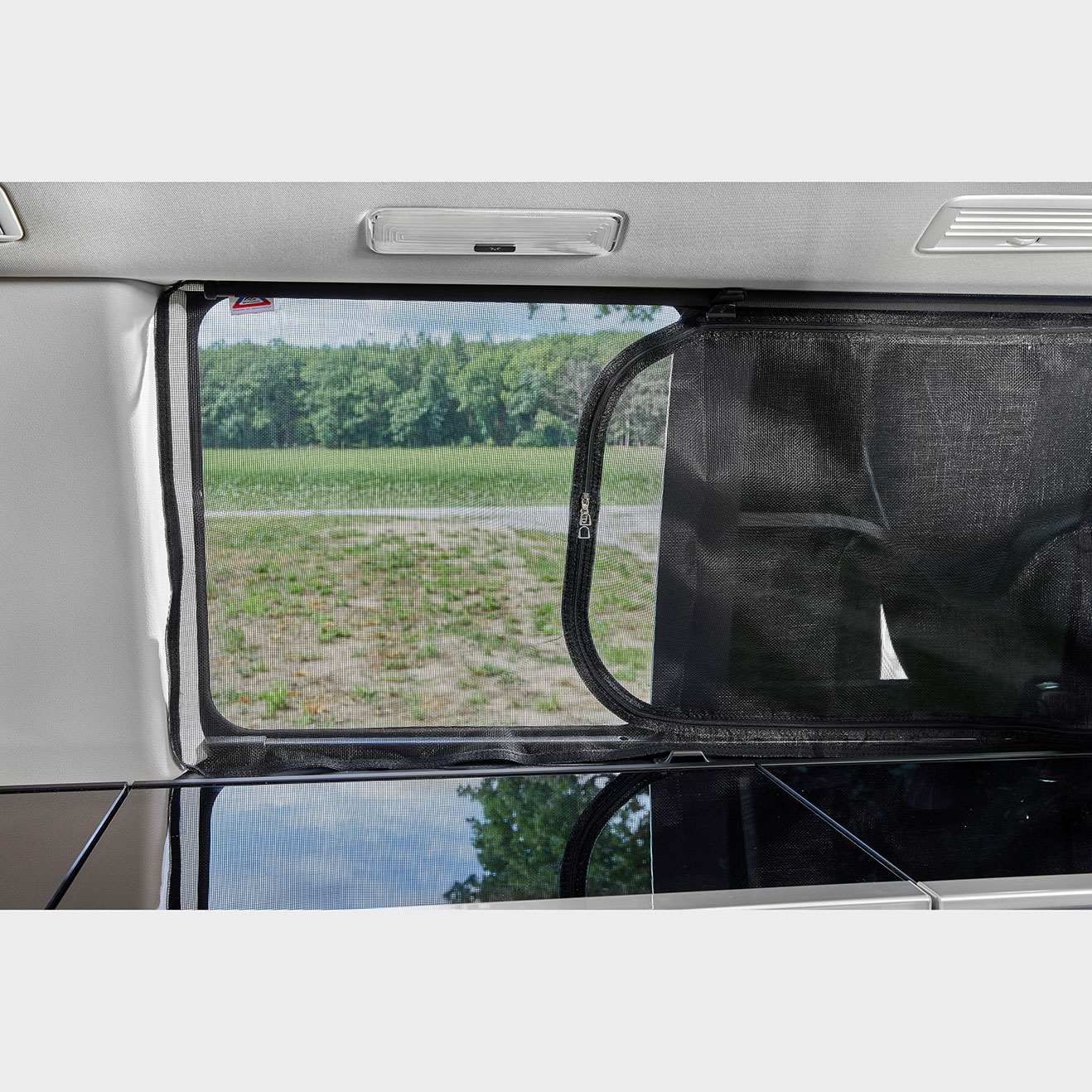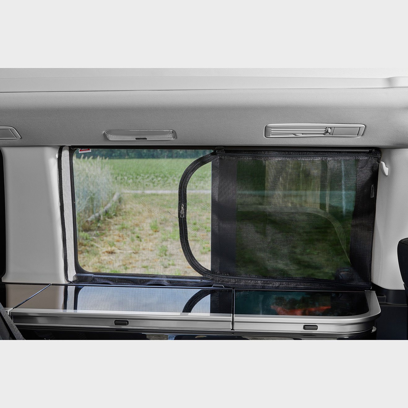 Das FLYOUT für Schiebefenster hat einen speziellen U-Reißverschluss. Die Bedienung des Schiebefensters ist jederzeit und einfach möglich, ohne das Netz abnehmen zu müssen.