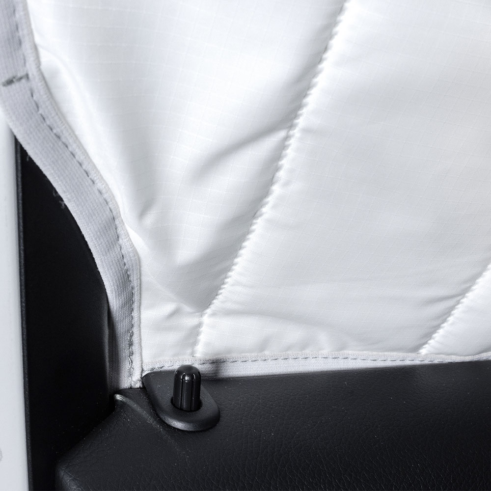 Thus, the temperature in the interior fluctuates significantly slower.- Front and side window insulation with durable suction cups and magnets