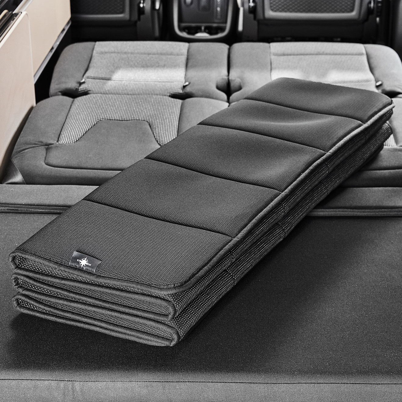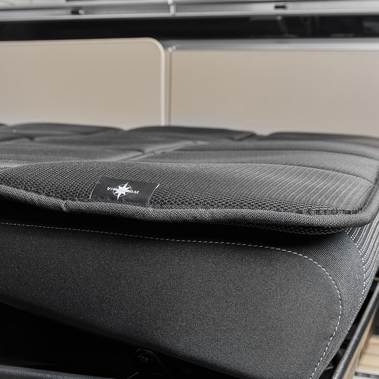 The Airmesh mattress topper from Westfalia is the perfect addition to your Mercedes-Benz Marco Polo. The mattress topper offers unique comfort and supports restful sleep during your travels. The Westfalia mattress topper was specially developed for the Mercedes-Benz Marco-Polo and fits perfectly on the reclining surface in the vehicle. Foldable! Easy handling and space-saving storage