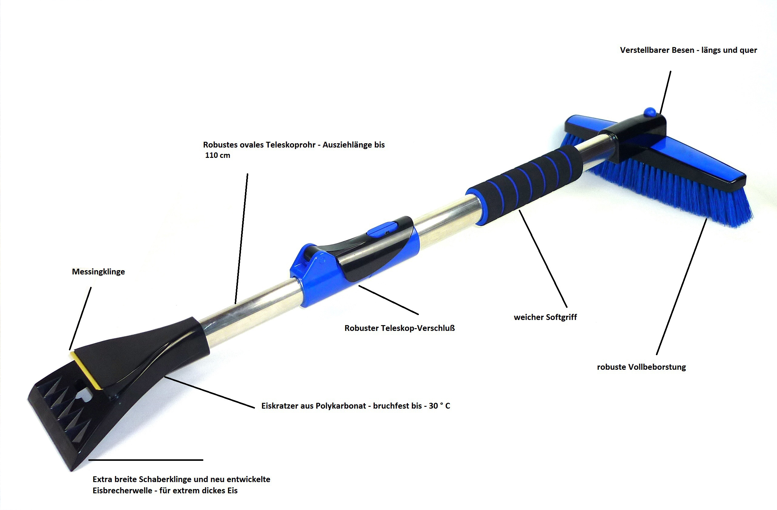 - Telescopic handle extendable up to 1.10 m – ideal for higher vehicle surfaces