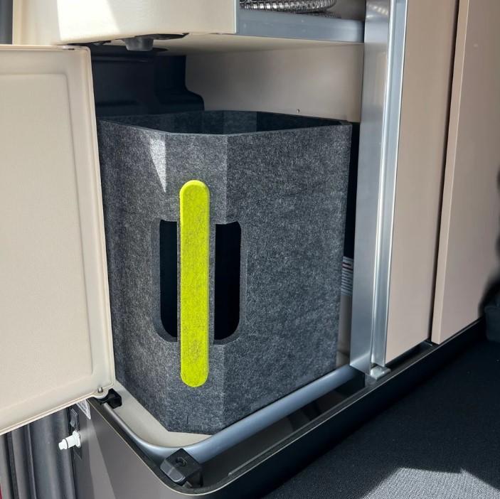 Nie wieder das komplette Fach ausräumen! Die hochwertige Staubox von 50°Nord ist passgenau für den Heckschrank/Gasschrank Ihres Mercedes-Benz Marco Polo gefertigt und bietet reichlich Platz für Reiseequipment. Ein Griff genügt und der Zugang zum Gastank ist frei.