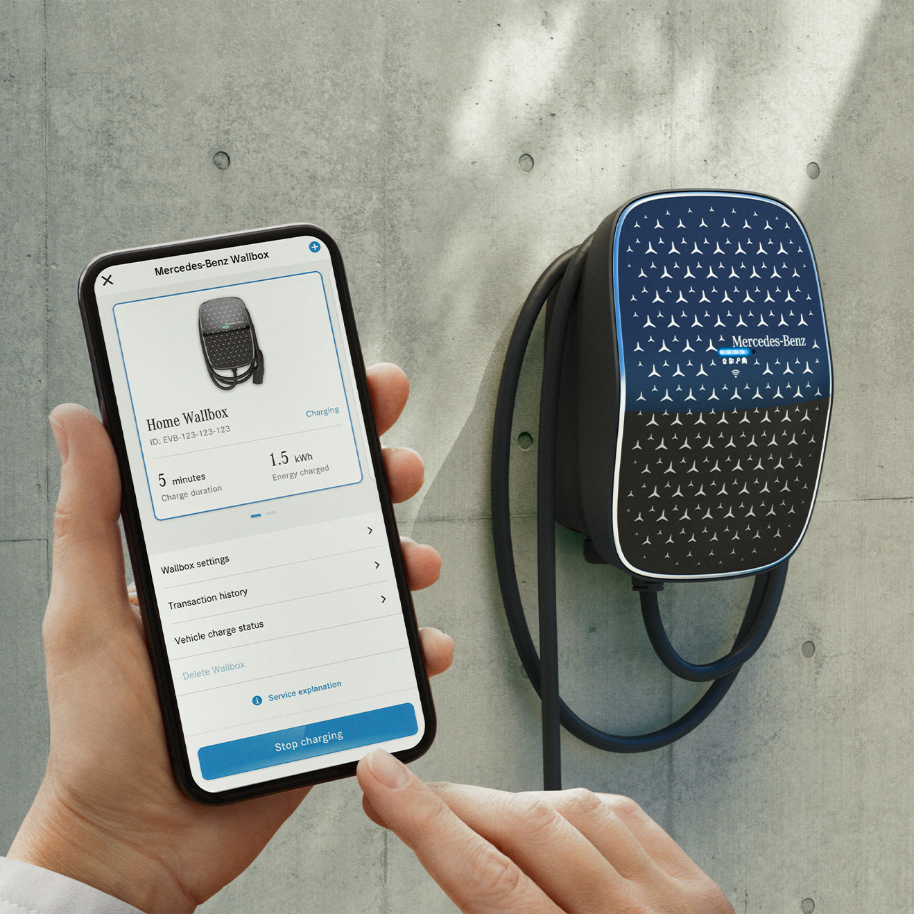 **L'utilisation des fonctions à distance de la Mercedes Benz Wallbox nécessite l'application Mercedes me, un identifiant personnel Mercedes me ainsi que l'approbation des conditions d'utilisation des services Mercedes me connect.