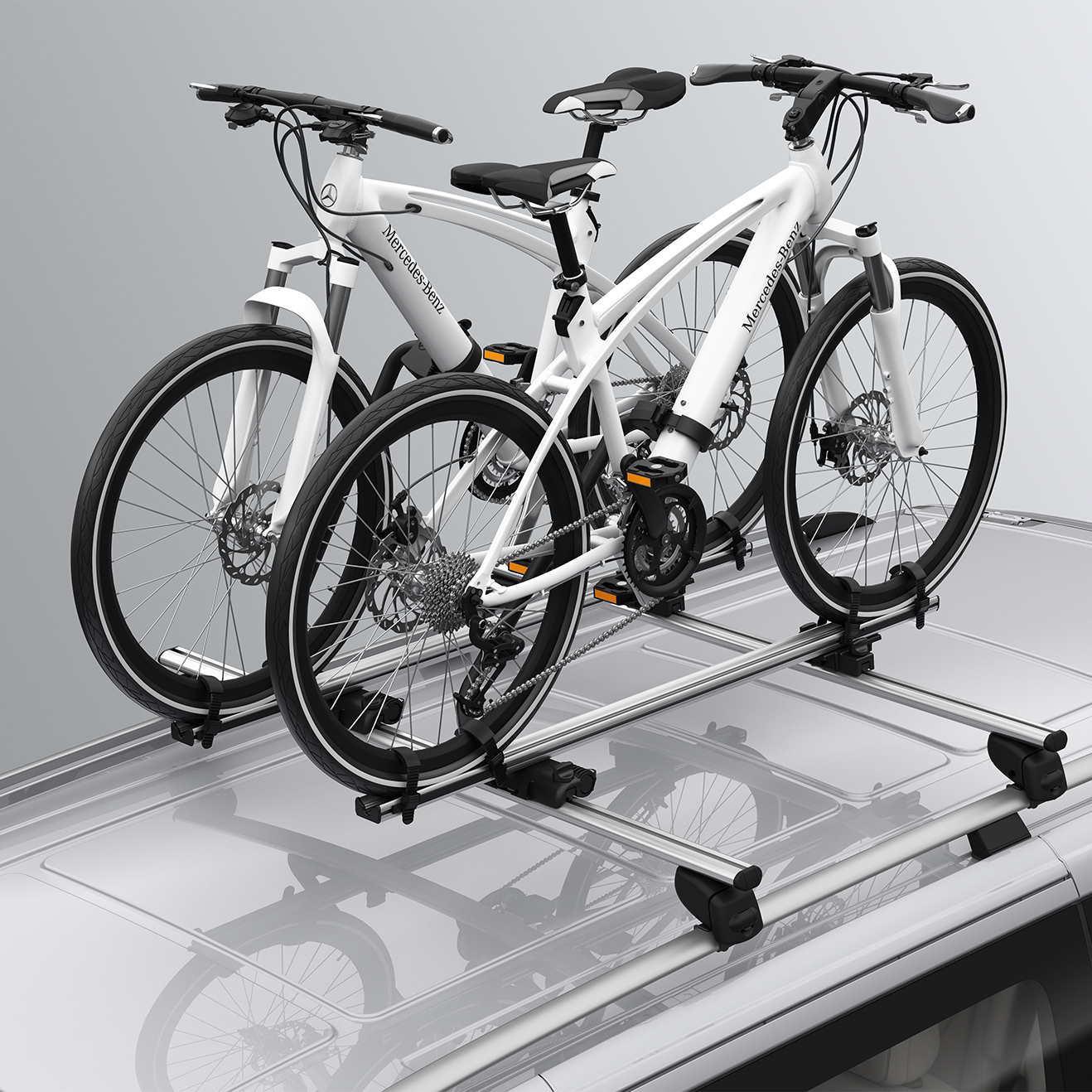 Porte-rails élégant en aluminium, parfaitement adapté à la carrosserie de votre véhicule, comme base multifonctionnelle pour diverses solutions de transport Mercedes-Benz : Porte-skis et snowboards, porte-vélos ou coffres de toit. Testé au crash test. Pour un montage facile sur les rails. Charge maximale sur le toit: 100 kg.