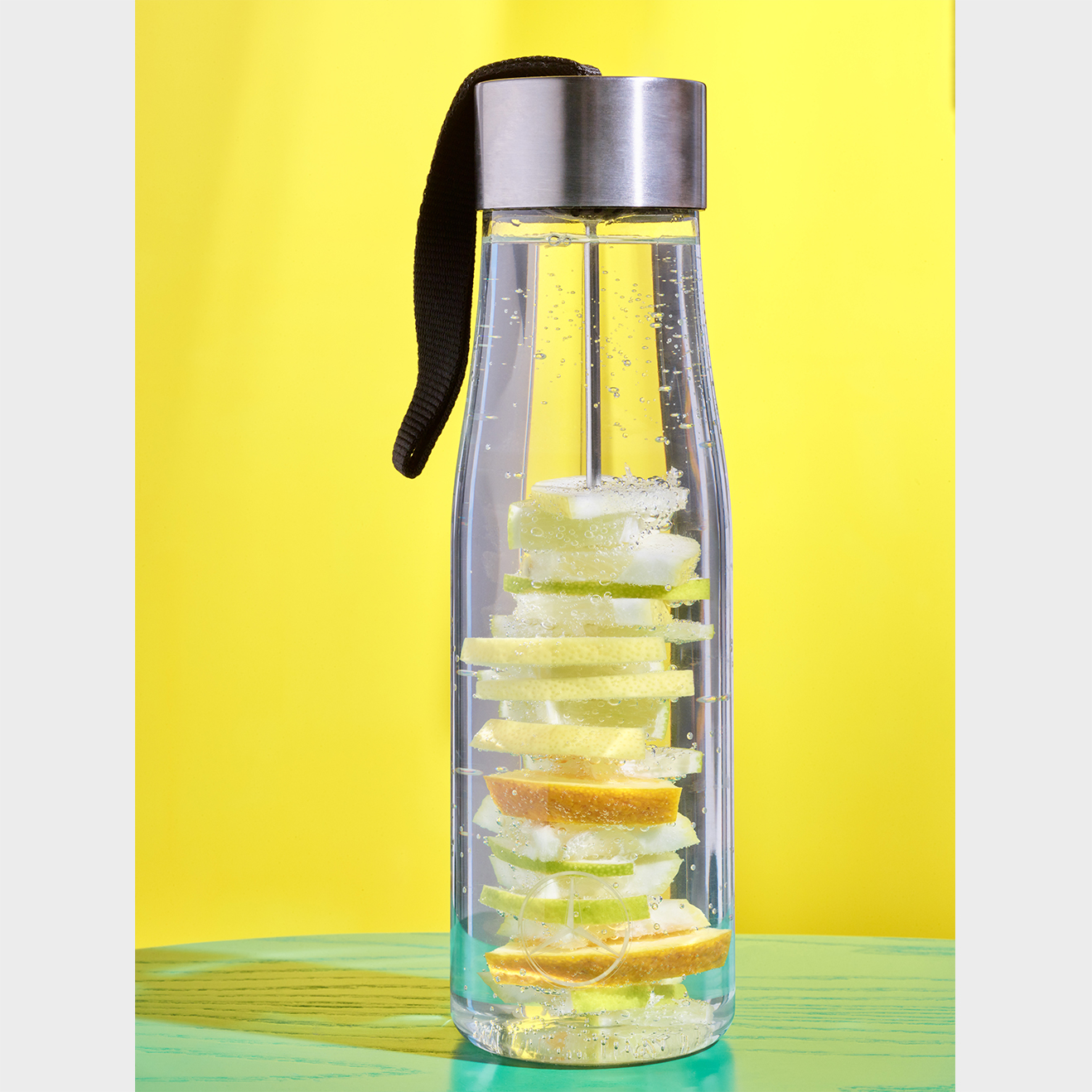 La gourde "Myflavour" de la Collection Mercedes-Benz est une manière stylée et pratique de transporter vos boissons avec style. Avec une contenance de 0,75 litre, la bouteille offre suffisamment de place pour vos boissons préférées, qu'il s'agisse d'eau, de jus ou de thé. Fabriquée en Tritan de haute qualité et sans BPA, la bouteille est durable et sûre pour une utilisation quotidienne. Le matériau est résistant aux chocs et aux éraflures et supporte également les températures extrêmes. La bouteille transparente avec des accents argentés n'est pas seulement fonctionnelle, elle attire aussi le regard. La brochette pour fruits intégrée à la bouteille est particulièrement pratique et vous permet de donner à votre eau un goût délicieux et sain. La gourde "Myflavour" passe au lave-vaisselle et est donc facile à nettoyer et à entretenir. Idéale pour une utilisation au bureau, à l'école, au sport ou en voyage, cette gourde est un must-have pour tous ceux qui sont à la recherche d'une solution de boisson élégante et pratique.