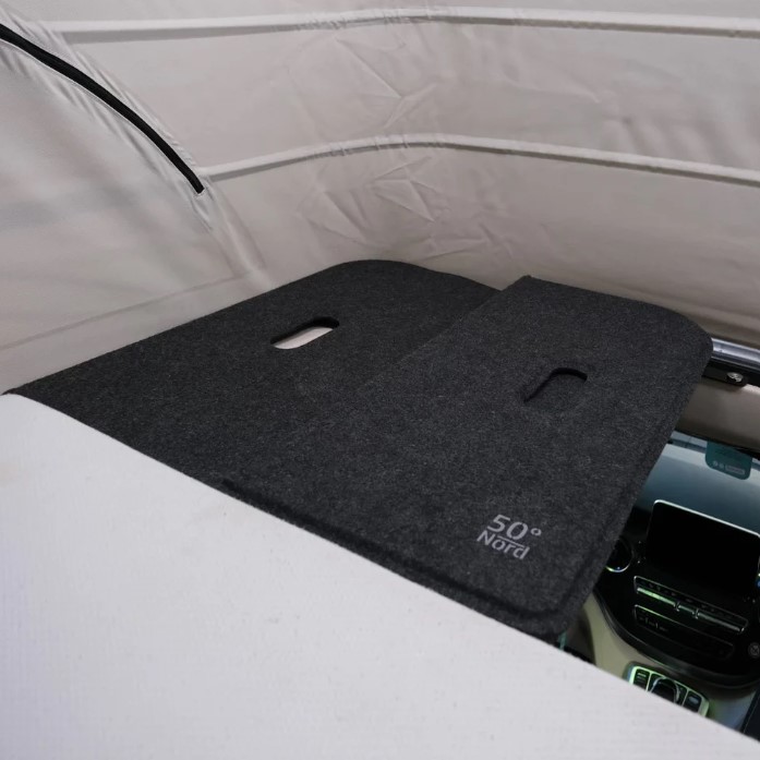 Das Schlafboard von 50°Nord ist die perfekte Lösung für mehr Platz und Komfort im Mercedes-Benz Marco Polo. Die Montage erfolgt einfach und ohne Bohren. Es erleichtert den Aufstieg ins Dachbett, verhindert verrutschende Kopfkissen und sorgt für zusätzlichen Stauraum.