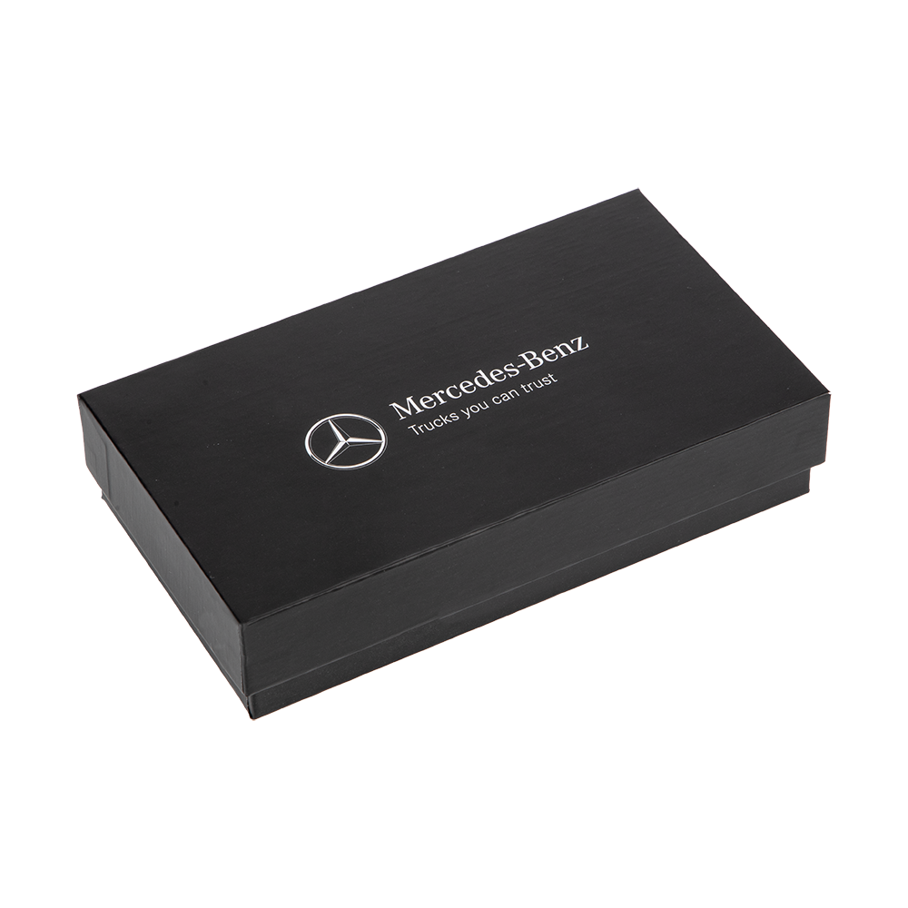 Bewahren Sie Ihre Schlüssel stilvoll mit diesem hochwertigen Leder‑Schlüsselanhänger auf. Das Echtlederband trägt die Mercedes‑Benz Trucks Wortmarke, während das runde Metall‑Emblem mit dem Mercedes‑Stern das Design abrundet. Der Schlüsselanhänger wird in einer schwarzen Mercedes‑Benz Geschenkbox geliefert.
