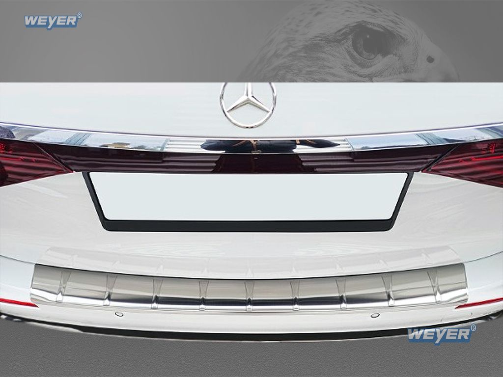 Entdecken Sie den hochwertigen WEYER Edelstahl Ladekantenschutz, entwickelt für die Mercedes E‑Klasse W214 T‑Modell (ab 2023‑).
